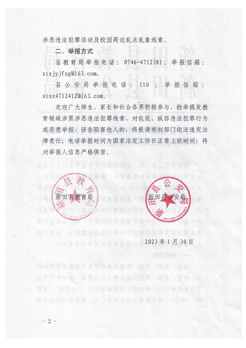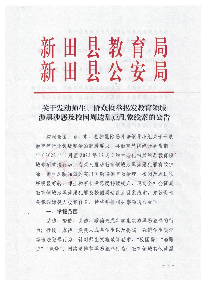 关于发动师生、群众检举揭发教育领域涉黑涉恶及校园周边乱点乱象线索的公告