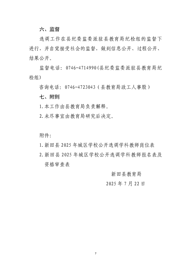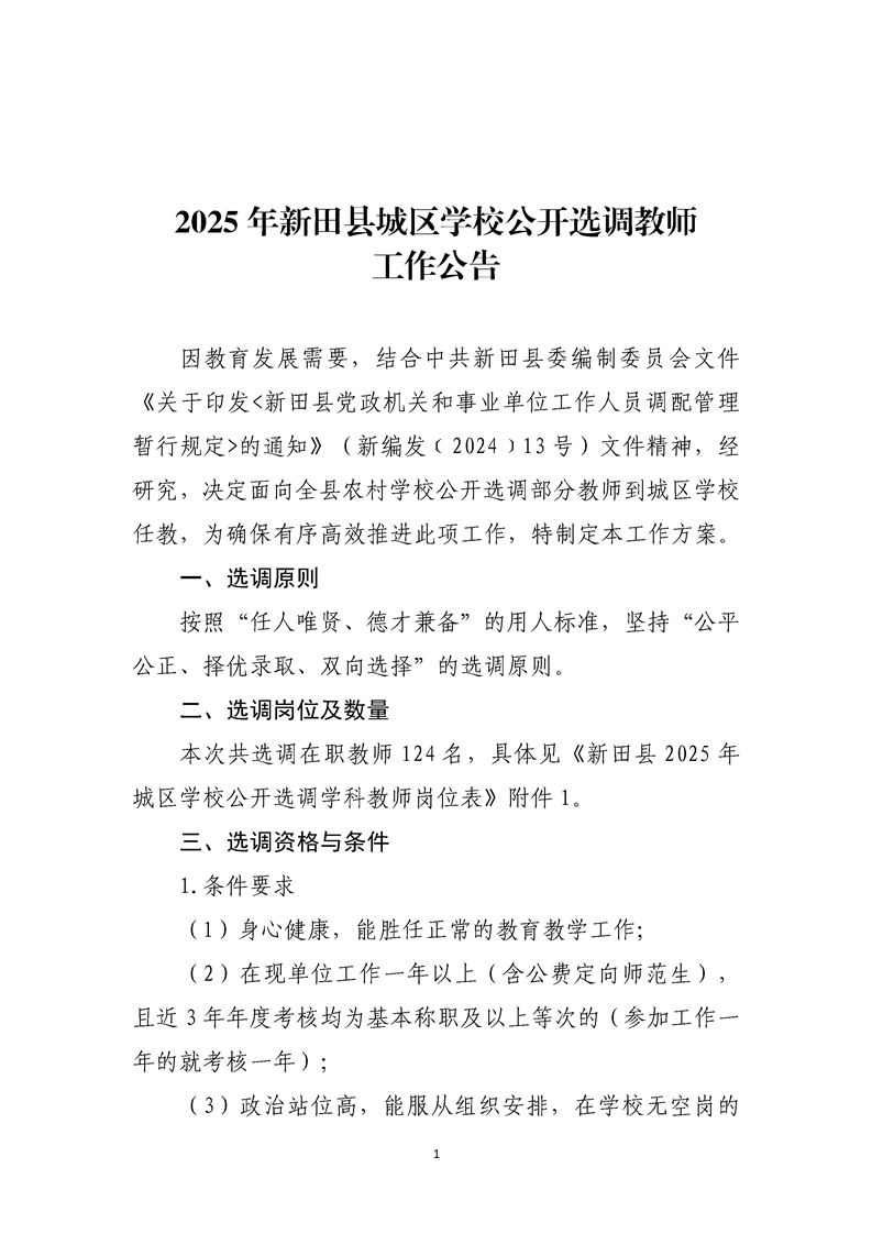 附件1 新田县 2025县城学校公开选调学科教师岗位表