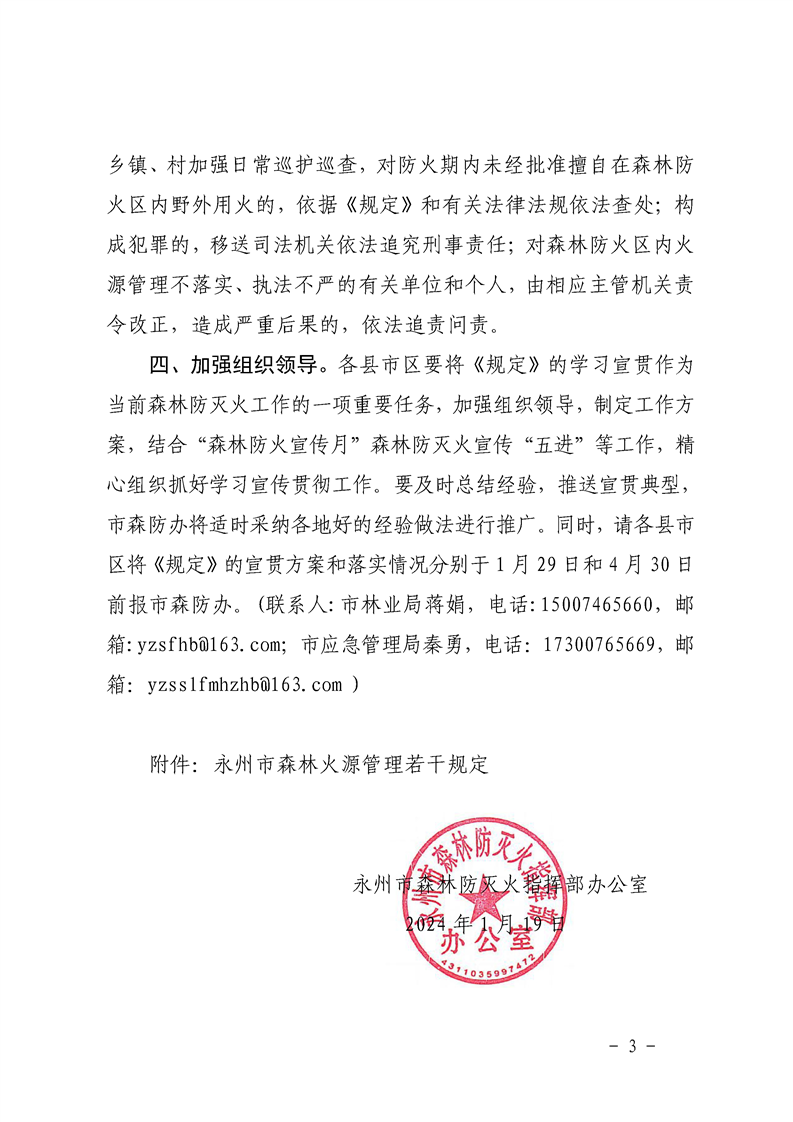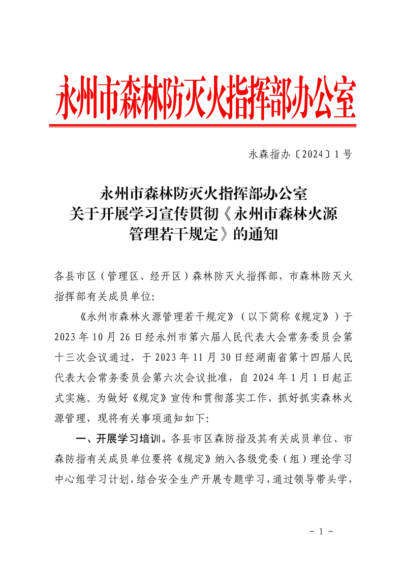 关于学习宣传贯彻《永州市森林火源管理若干规定》的通知