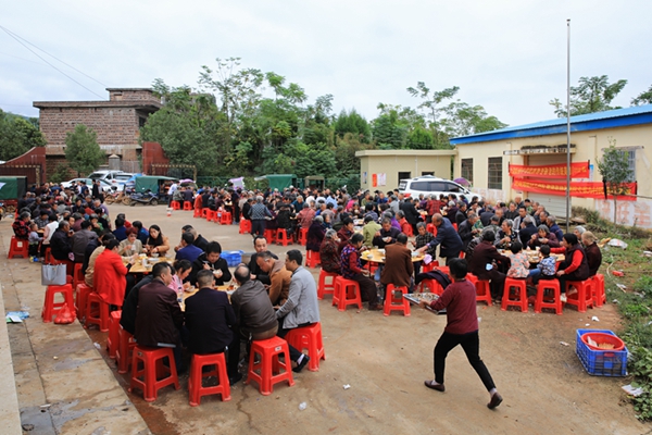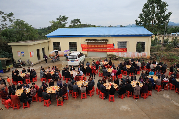 "如今党的政策好,扶贫工作成效大,让我们过上了幸福的生活,全村老人能这样聚在一起,真是我们的福气啊",谭长元老人高兴地说。