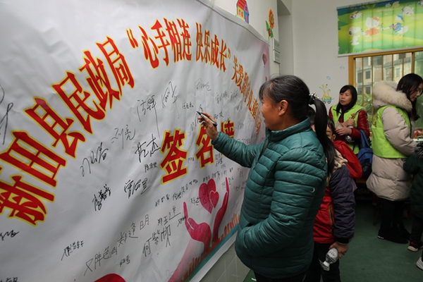 随着农村劳动力转移,大量农民外出务工,出现了继"单亲家庭"后的不少"留守儿童"。近几年,为了解决这一社会问题,新田县民政局先后兴建留守儿童之家135所,新圩镇祖亭下村留守儿童之家就是今年刚建成的其中一所,该村有25 名留守儿童需要社会各界的关怀和帮助。县民政局党支部与县雅韵艺术学校联合开展这次关爱留守儿童活动,给慈善志愿者们提供了一个和孩子交流的平台,增进了与孩子们之间的情感,也是一次深情的感恩教育,大力弘扬了"奉献、友爱、互助、进步"的志愿服务精神。(彭明军、曾海燕)