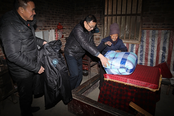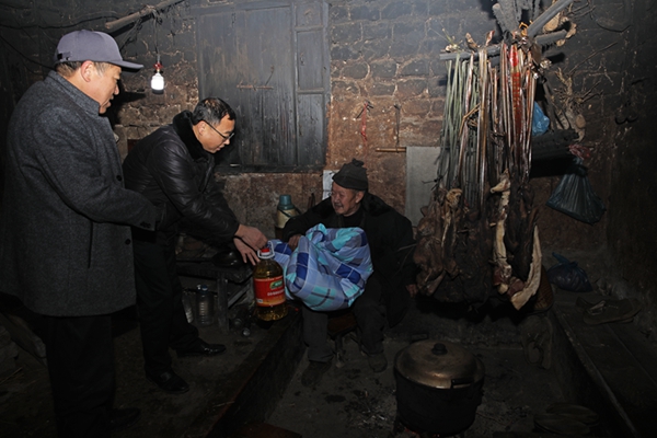 "非常感谢了,没想到你们到这么远来关心我们。"金陵镇磨刀岭村93岁高龄老人罗春兰对前来慰问的县民政局局长周祖顺说。这是该局开展"大走访、大调研、大慰问、解难题"活动的一个场面。当天,县民政局走访调研组一行10人,踏着冰雪,顶着严寒,来到大山深处的磨刀岭村走访慰问了贫困户付下华、李传林、黄祖尧、特困供养人员谢才仁、高龄老人罗春兰等困难对象,与他们膝足谈心,嘘寒问暖,详细了解困难群众生活情况。
