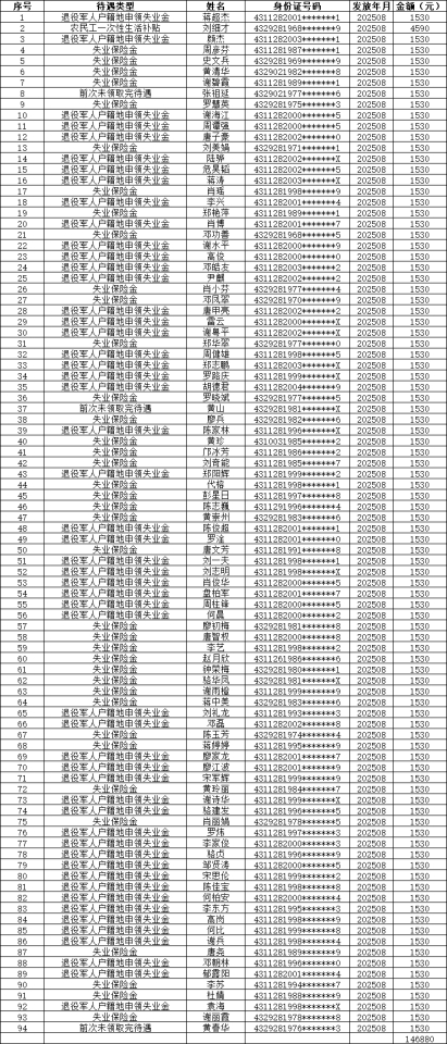 根据湖南省失业保险条列及有关规定,经县就业服务中心审批通过,我县蒋超杰等94人员符合领取失业保险金条件,现对相关情况予以公示。
