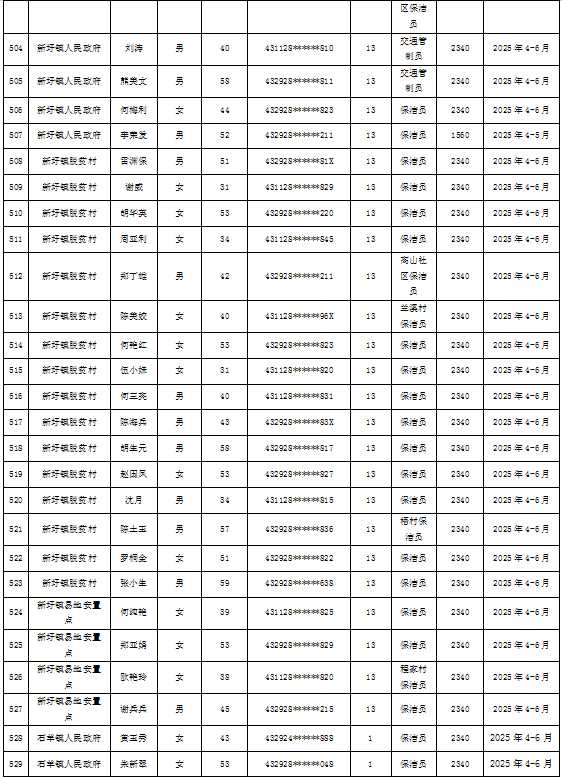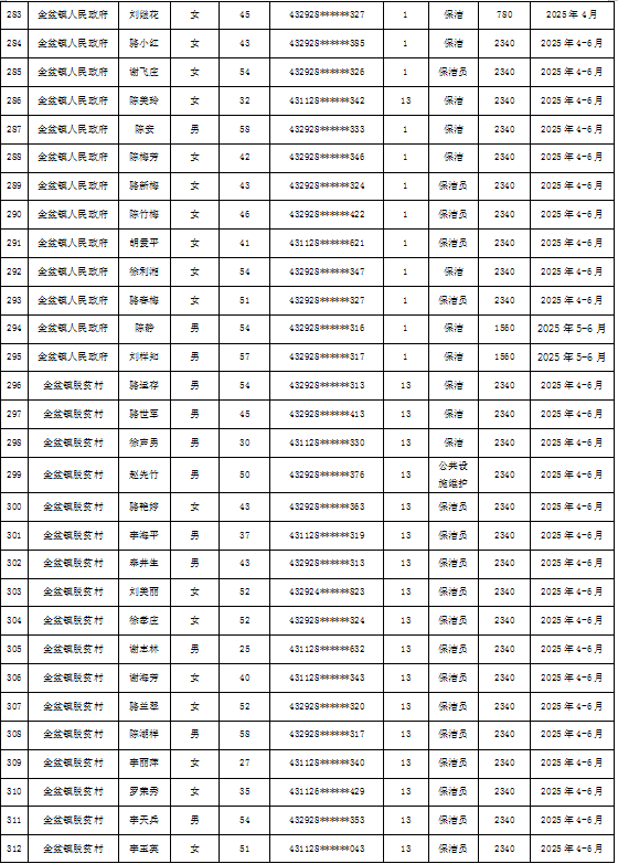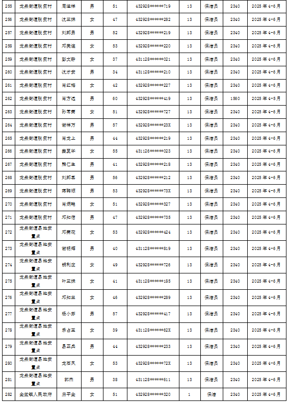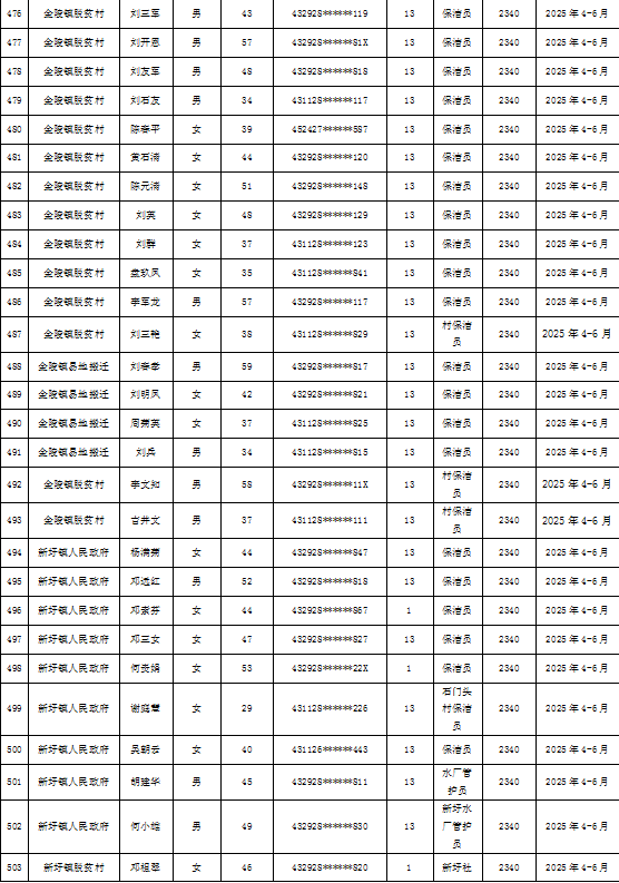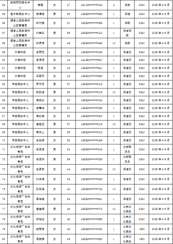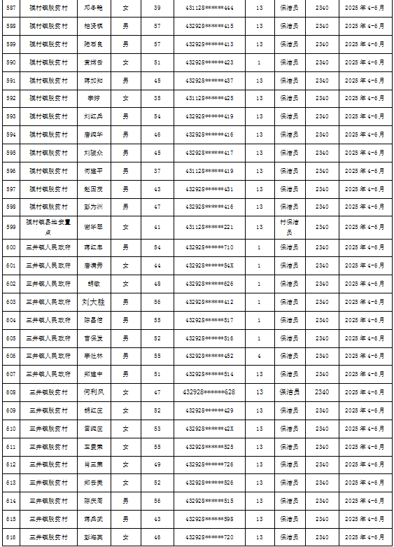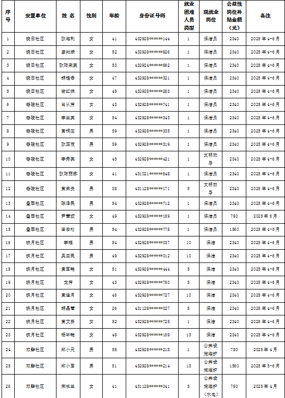 为加强我县公益性岗位监督管理,根据《新田县公益性岗位开发管理经办规程(试行)的通知》(新人联发〔2024〕8号),现将新田县2025年第二季度公益性岗位从业人员补贴名单(见附件)公示,公示期7天。如有异议请向新田县就业服务中心等相关部门反映情况。