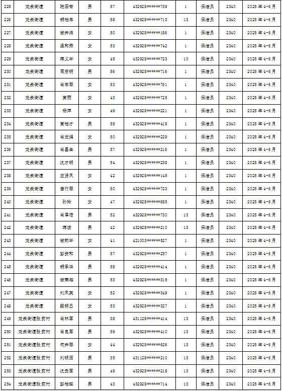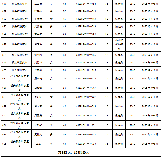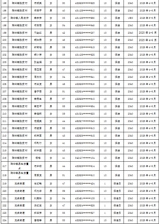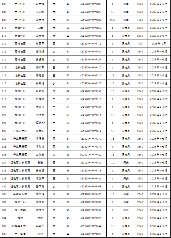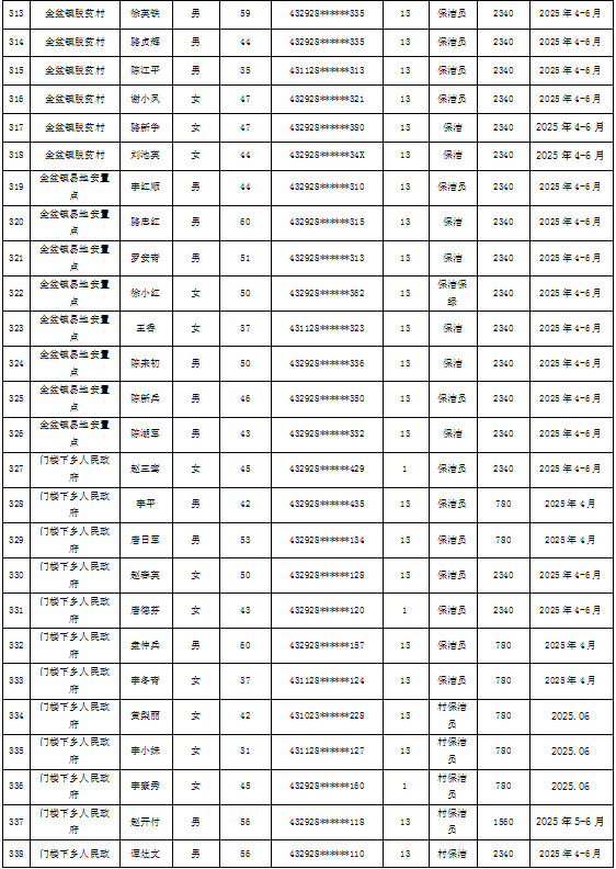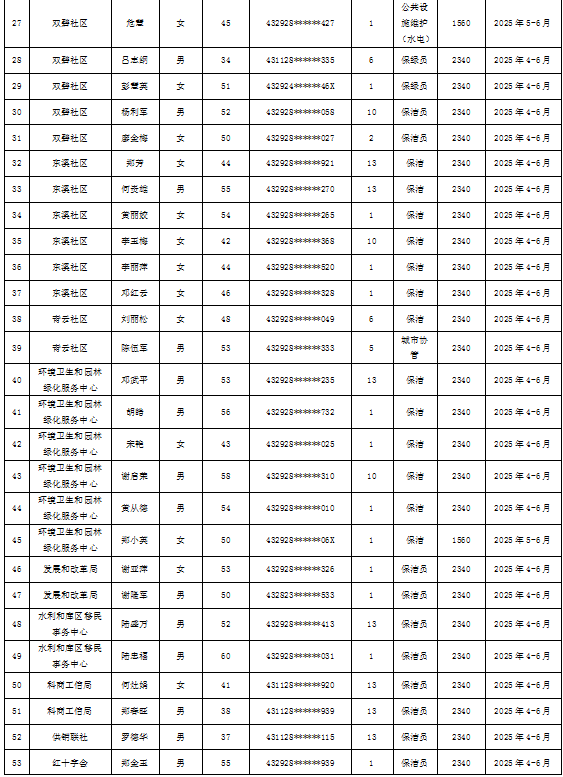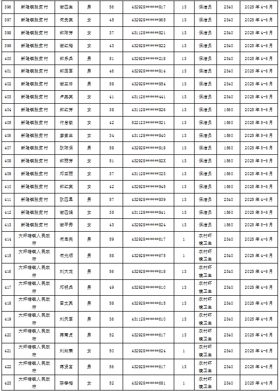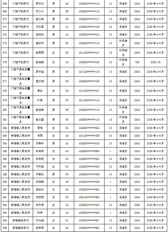 为加强我县公益性岗位监督管理,根据《新田县公益性岗位开发管理经办规程(试行)的通知》(新人联发〔2024〕8号),现将新田县2025年第二季度公益性岗位从业人员补贴名单(见附件)公示,公示期7天。如有异议请向新田县就业服务中心等相关部门反映情况。