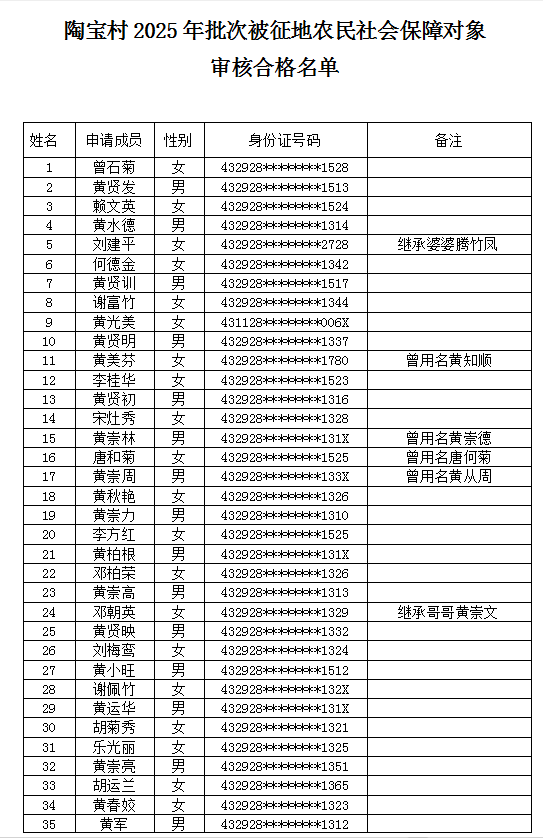附件:《被征地农民社会保障对象审核合格名单》