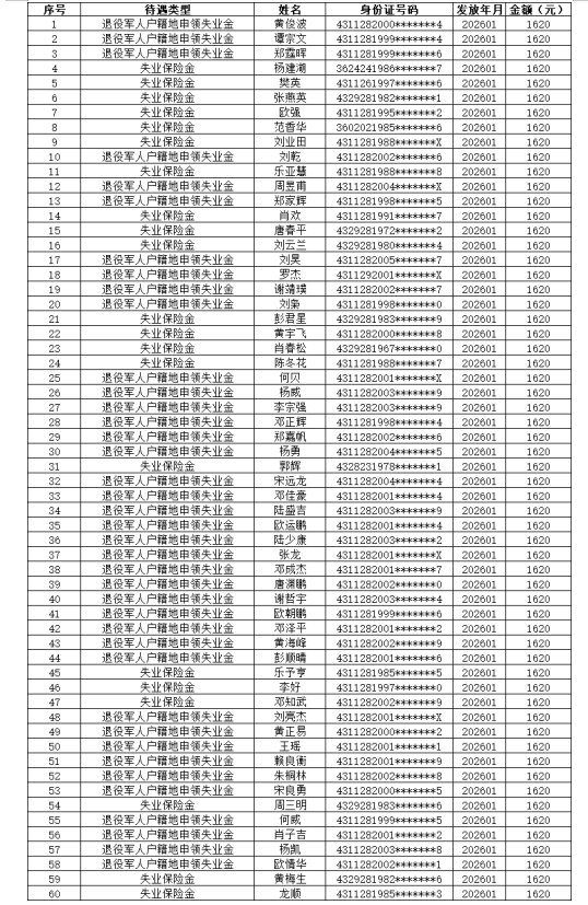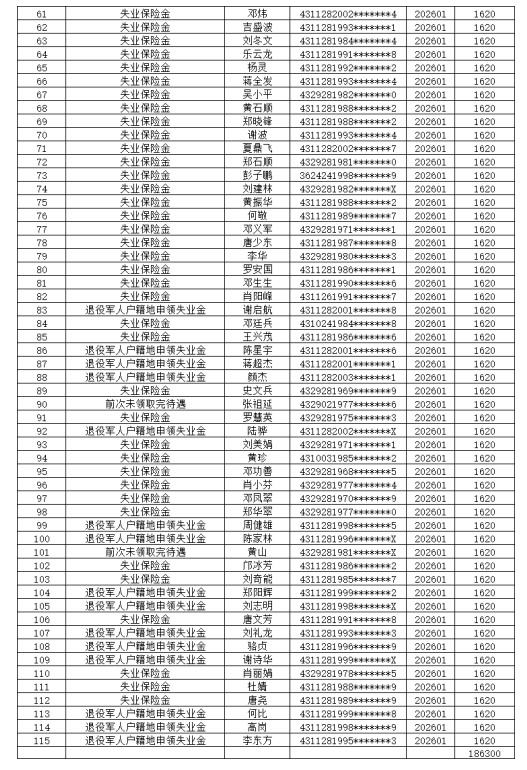 根据湖南省失业保险条例及有关规定,经县就业服务中心审批通过,我县黄俊等115人员符合领取失业保险金条件,现对相关情况予以公示。