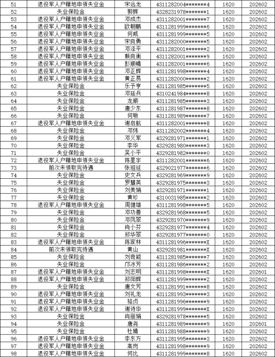 根据湖南省失业保险条列及有关规定,经县就业服务中心审批通过,我县刘贞娟等98人员符合领取失业保险金条件,现对相关情况予以公示。