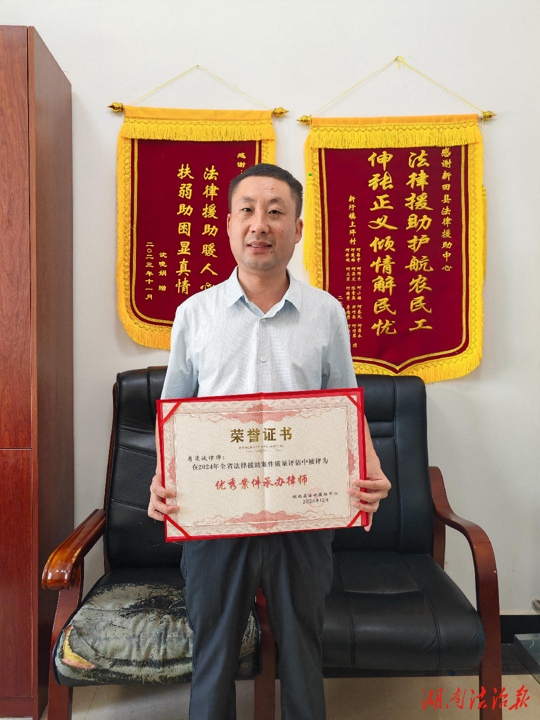 湖南法治报讯(通讯员肖知富李娜)在湖南省司法厅2024年度法律援助案件质量评估中,新田县法律援助中心选送的10本参评卷宗表现亮眼,其中湖南超创律师事务所肖凌波律师、湖南人望律师事务所樊伟律师凭借规范的办案流程与优质的服务质量,获评“优秀案件承办律师”,这是该县法律援助工作质量持续提升的有力体现。