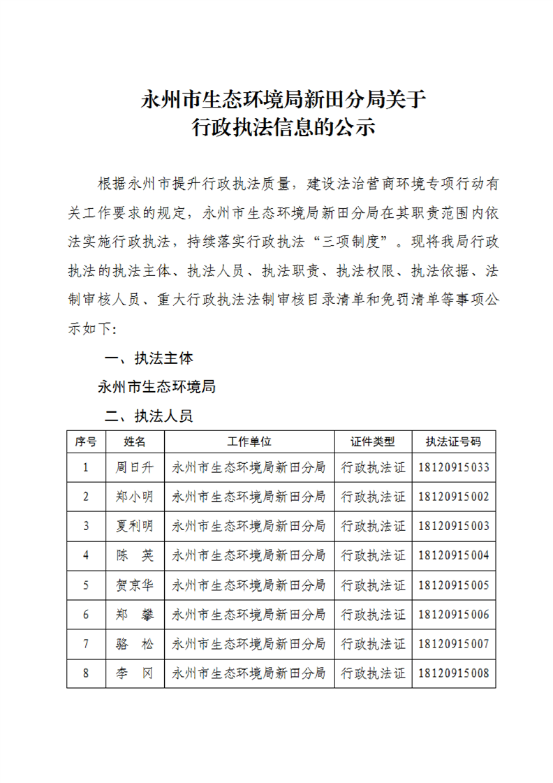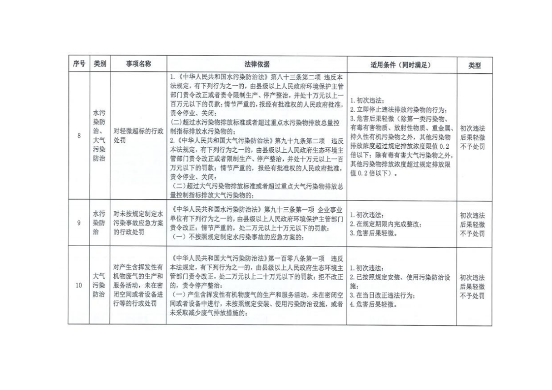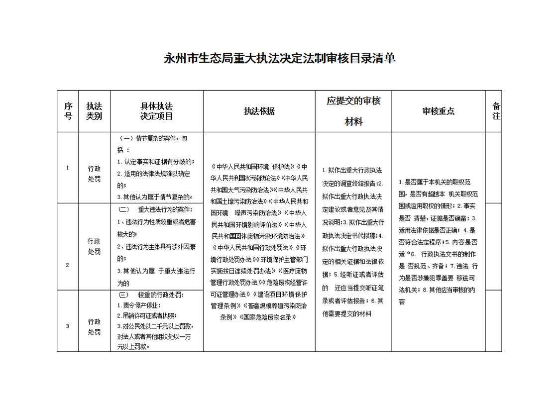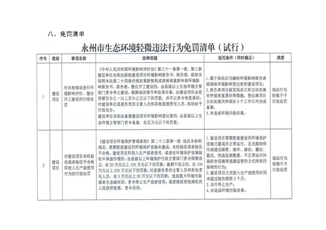 附件1 :关于印发《永州市生态环境综合行政执法事项清单》的通知