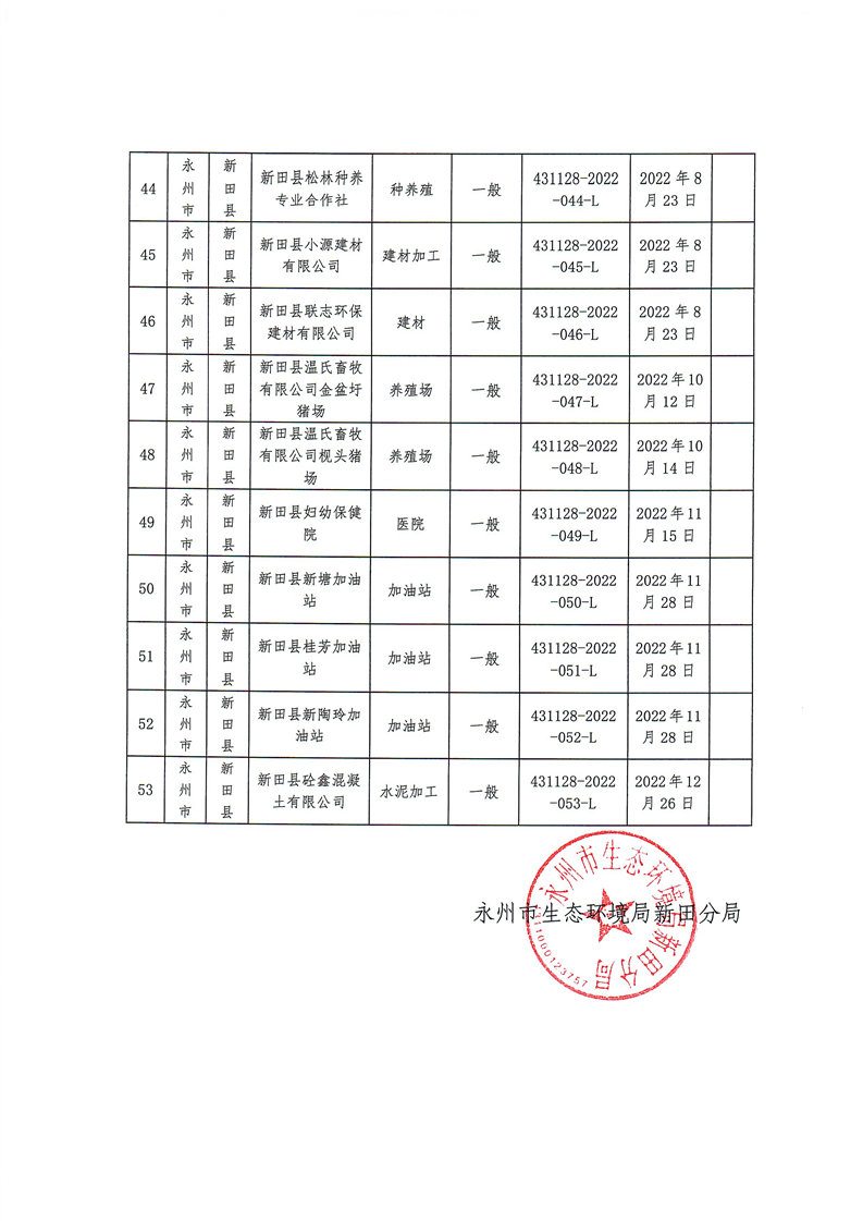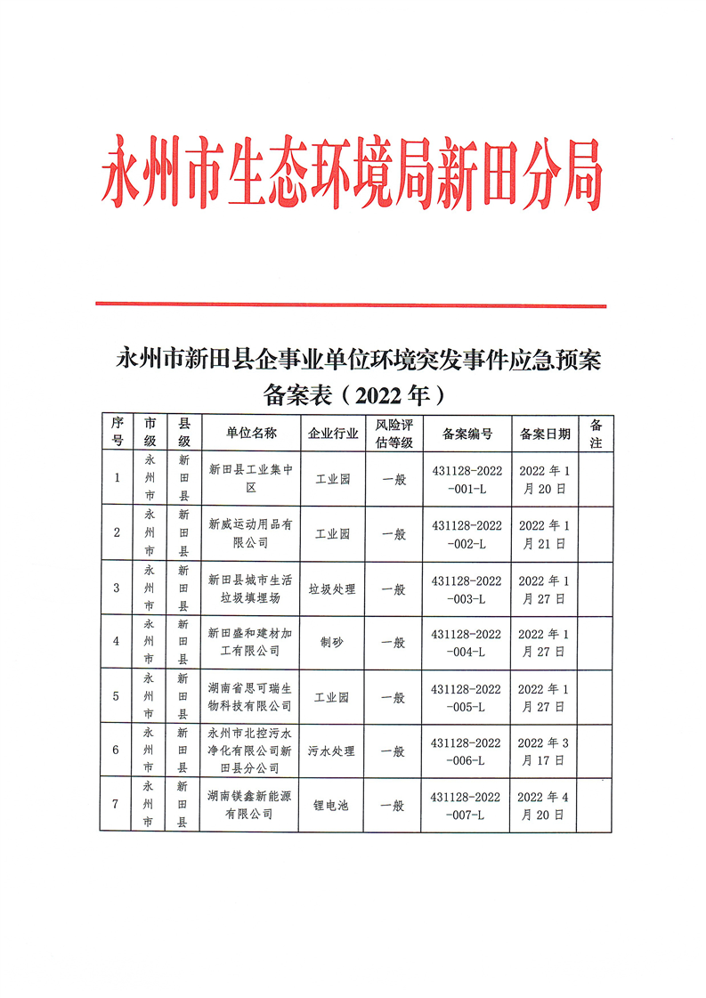 永州市新田县企事业单位环境突发事件应急预案备案表(2022)