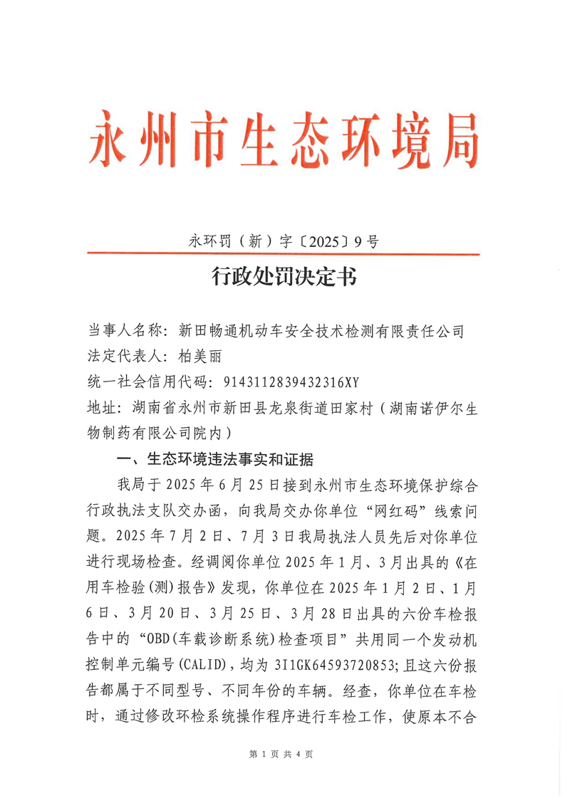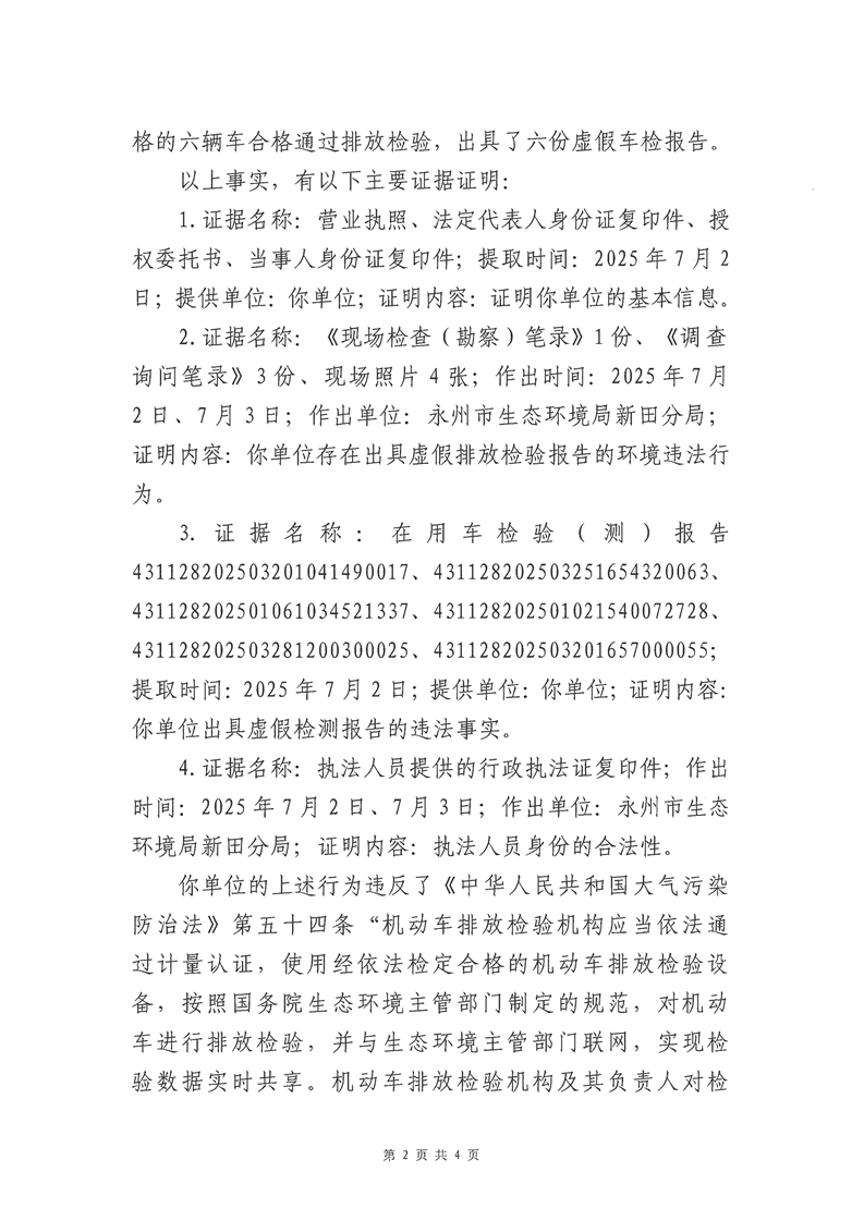 新田畅通机动车安全技术检测有限责任公司出具虚假检测报告行政处罚决定书
