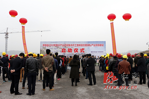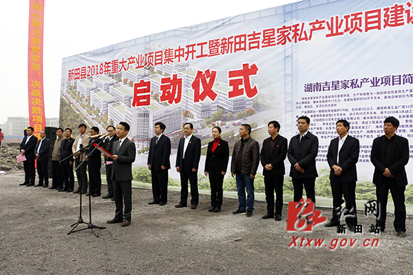 3月2日,新田县举行2018年重大产业项目集中开工启动仪式,吉星家私等一批重大产业项目同日集中开工,总投资达88亿元。市委常委、宣传部长刘尤碧宣布项目开工。县委副书记、县长秦山成作热情洋溢的讲话,县委常委、常务副县长王名扬主持开工仪式。