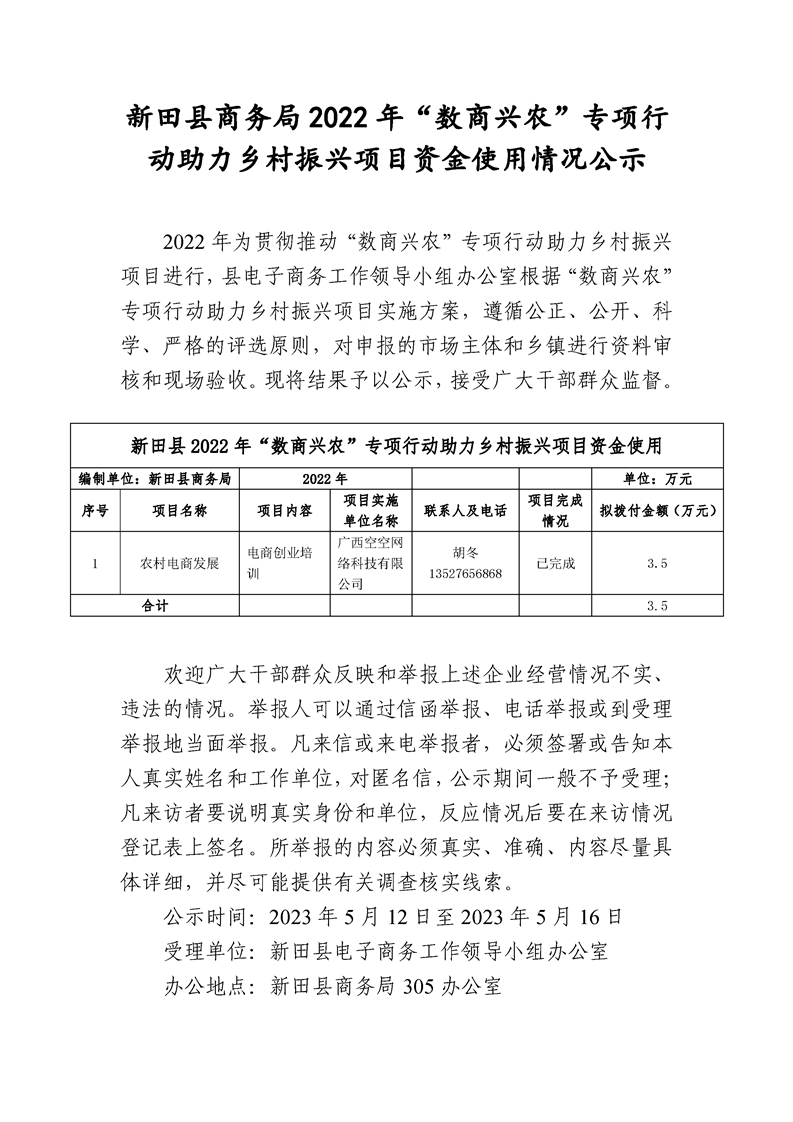 2022年度“数商兴农”专项行动助力乡村振兴项目资金使用情况公示