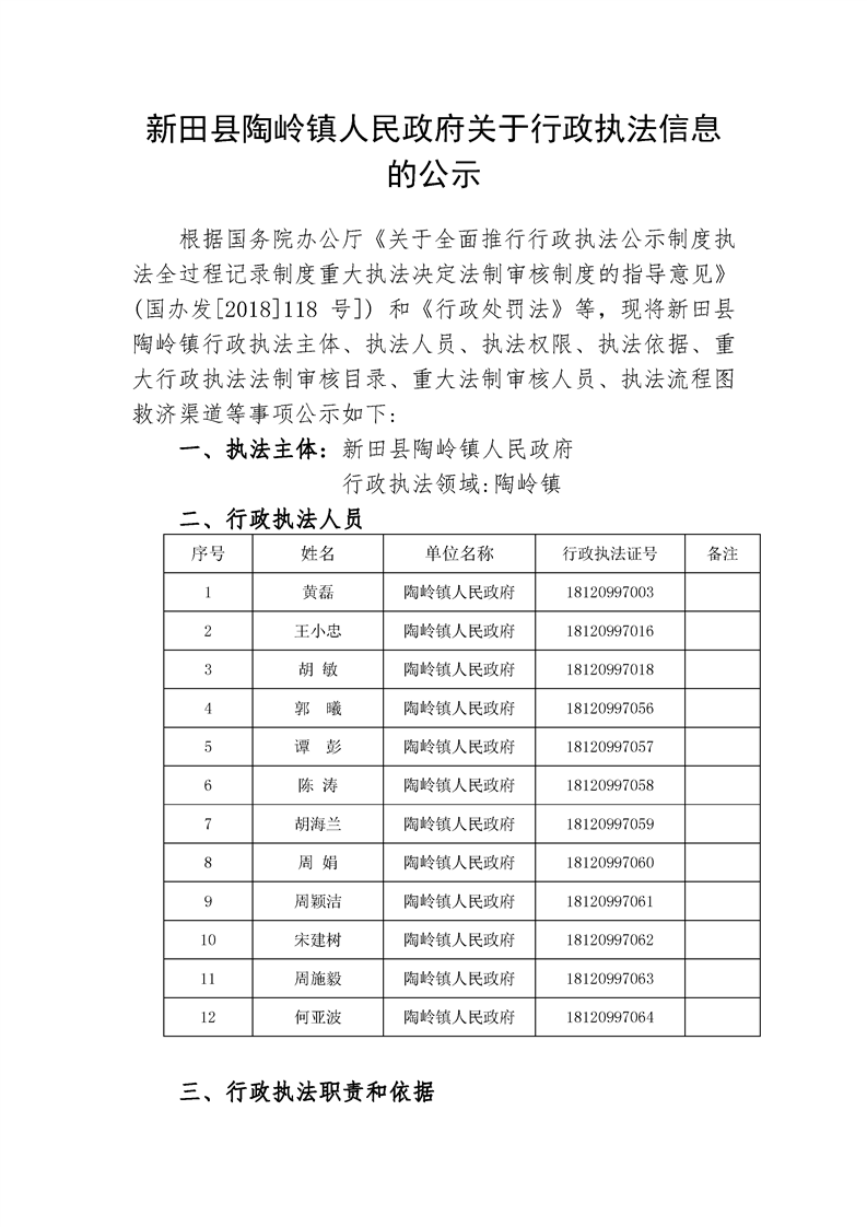 新田县陶岭镇人民政府关于行政执法信息的公示