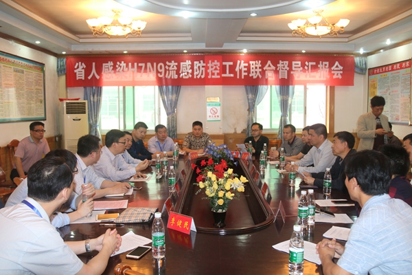 4月19日,由省卫计委、省工商局、省食药监局、省畜牧水产局组成的联合督导组来新田督导人感染H7N9流感疫情防控工作。