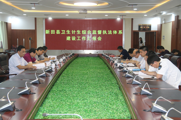汇报会上,何勇对卫计综合监督执法体系建设工作做了汇报,何勇表示,新田整合资源、建立健全了工作网络,组建了乡镇卫计综合监督专业工作队伍,实现监督工作责任分解,理顺层级监督协管职责,实现了卫计监督职责归位,建立了县综合行政执法局人员包片联点制度,建立了档卡管理制度、层级监管制度、“双随机、一公开”和“执法过程全记录”制度,通过强化考核保障、经费保障、信息化保障、部门联合提高了卫生计生综合监督行政执法水平,取得了一定成效,但也存在运行机制不顺畅、监督执法及时率不高等问题,期望省、市卫健委给予精心指导和更多帮助。
