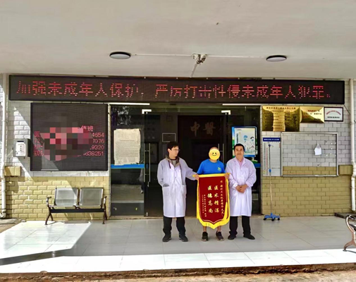 新田卫健网(通讯员 唐小敏4月14日,骥村镇卫生院上演了温馨一幕。患者胡大叔将一面写有“医术精湛 医德高尚”的锦旗送到医护人员手中,以此表达对卫生院全体医护人员的感激之情。