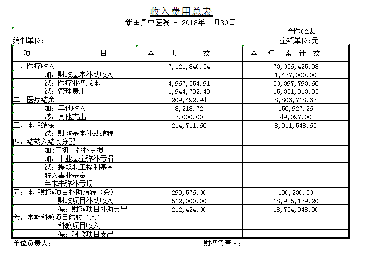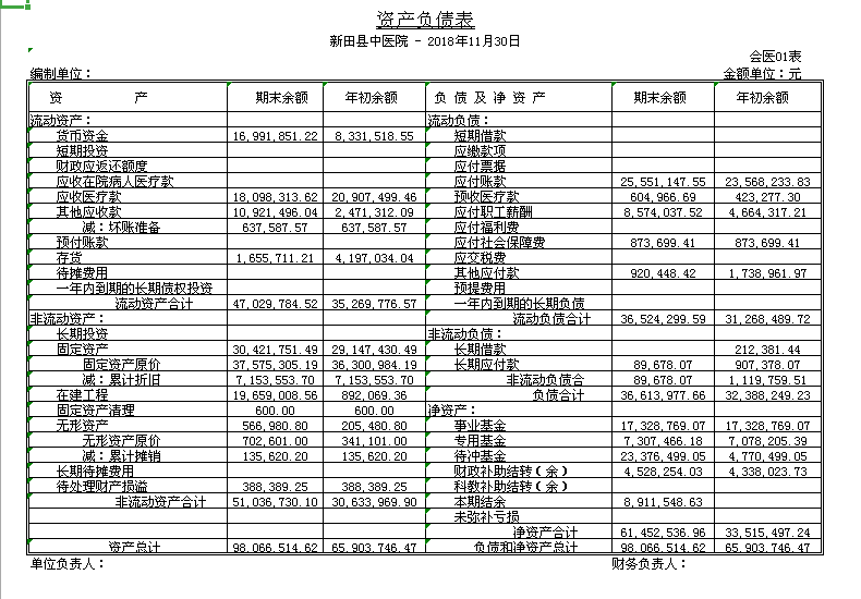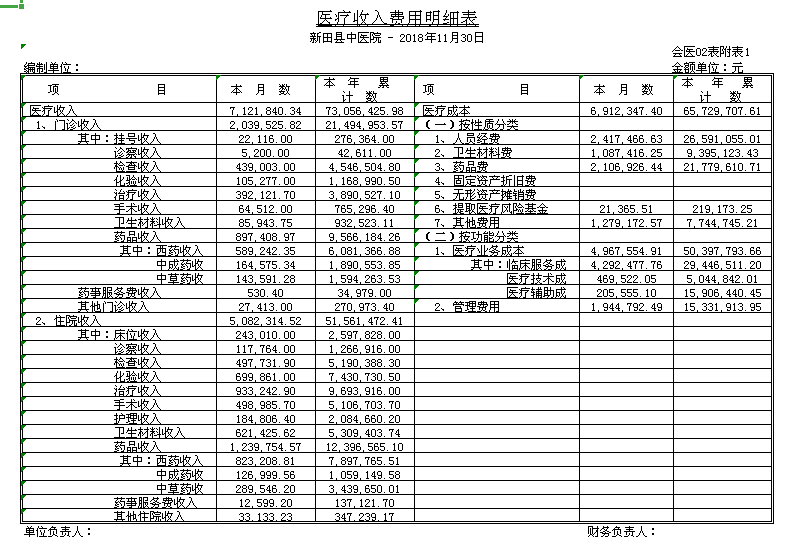 新田县中医医院2018年财务公示