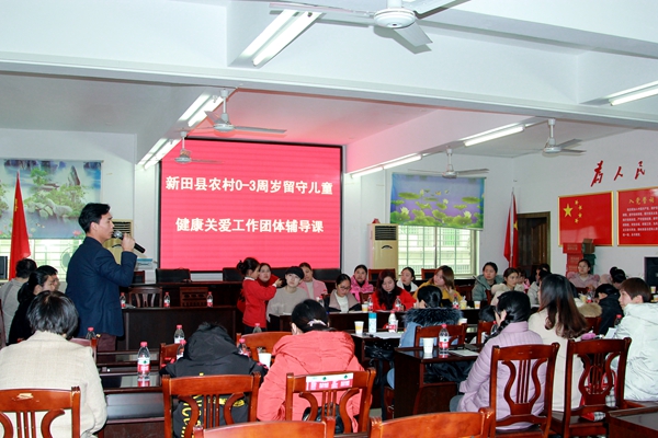1月25日,新田县卫计委召开“0-3周岁农村留守儿童心理健康关爱”干预工作交流座谈会,中科院、中国健康教育中心专家,县卫计委领导及干预工作志愿者骨干参加座谈会。