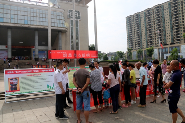 5月30日上午,新田县卫计委组织县爱卫办、疾控中心健康教育所、卫生计生综合监督执法局在县文体中心广场开展第31个世界无烟日主题宣传活动。