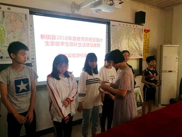 “感谢领导对我的关心”新田县瑞华学校独生子女邓毅同学接过增发的生活补贴激动地说道。6月21日,新田县云梯学校举行贫困计划生育家庭学生增补生活津贴发放仪式,该校16名在校生获得每人400元的生活津贴。