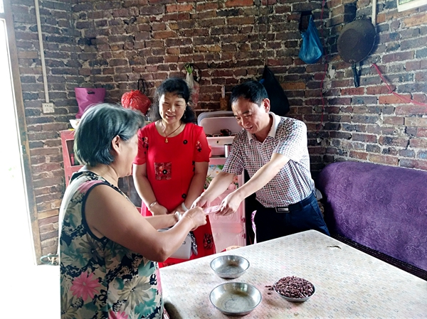 6月21日,新田县农业委、卫计委的领导来到三井镇谈文溪村,入户走访困难计生家庭,为他们送去产业扶持资金。