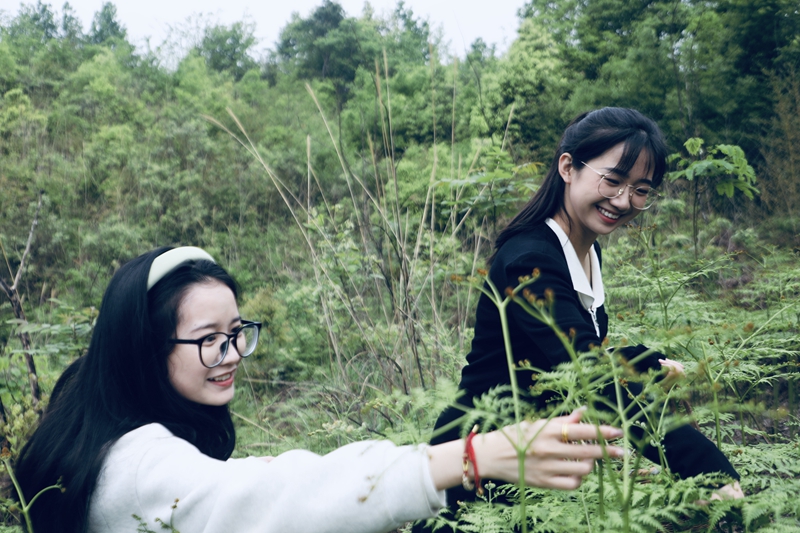 经过一场场春雨的呼唤,在新隆镇山田湾村的后山上,一株株蕨菜从地下钻了出来。趁着周末,在镇里从事教育工作的郑亚灵约上几个好姐妹,进山搜寻心心念念的美味。