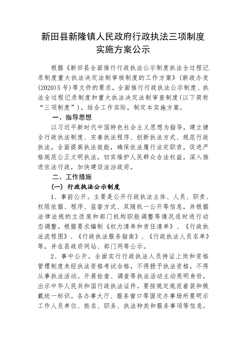 新田县新隆镇人民政府行政执法三项制度实施方案公示