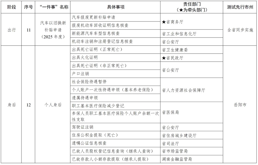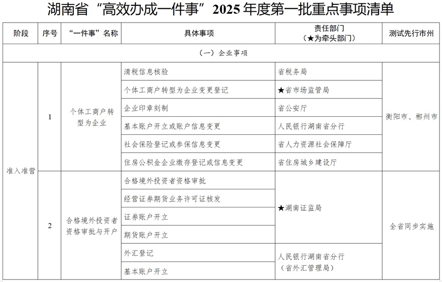 湖南省“高效办成一件事”2025年度第一批重点事项推进安排