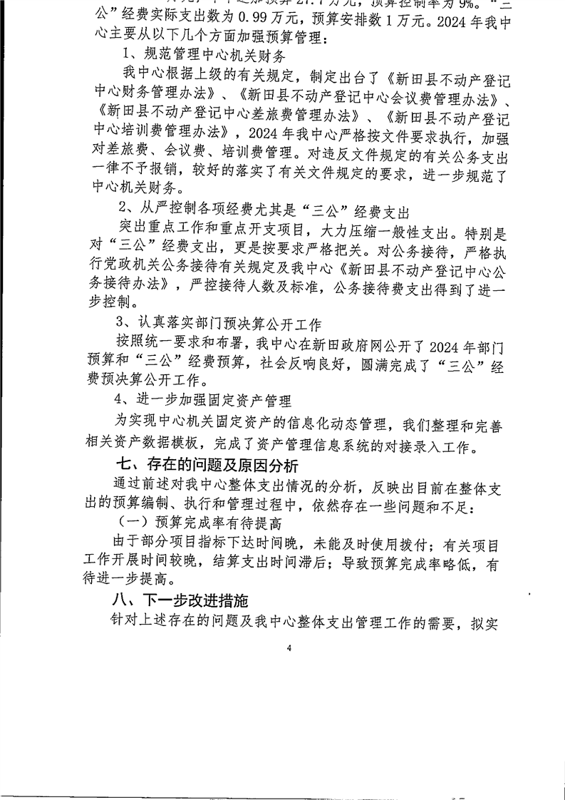 2024年度新田县不动产登记中心整体支出绩效自评报告