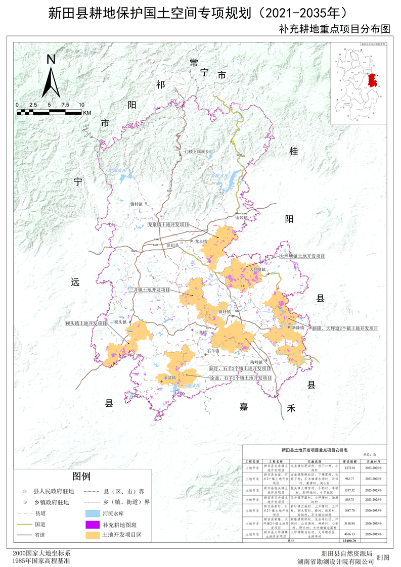 根据《湖南省自然资源厅办公室关于开展市县级耕地保护国土空间专项规划和耕地保护一张图编制工作的通知》(湘自资办发〔2021〕44号)要求,我局组织编制了《新田县耕地保护国土空间专项规划(2021-2035年)》(以下简称《规划》)。目前,该《规划》已完成咨询论证、规划公示、意见征集、专家论证、市级技术审查、县政府常务会和县规划委员会审议等规定程序。2024年1月5日,经县人民政府批准实施(新政函〔2024〕2号)。按照《中华人民共和国城乡规划法》的相关要求,现将批准后的《新田县耕地保护国土空间专项规划(2021-2035年)》予以公告。