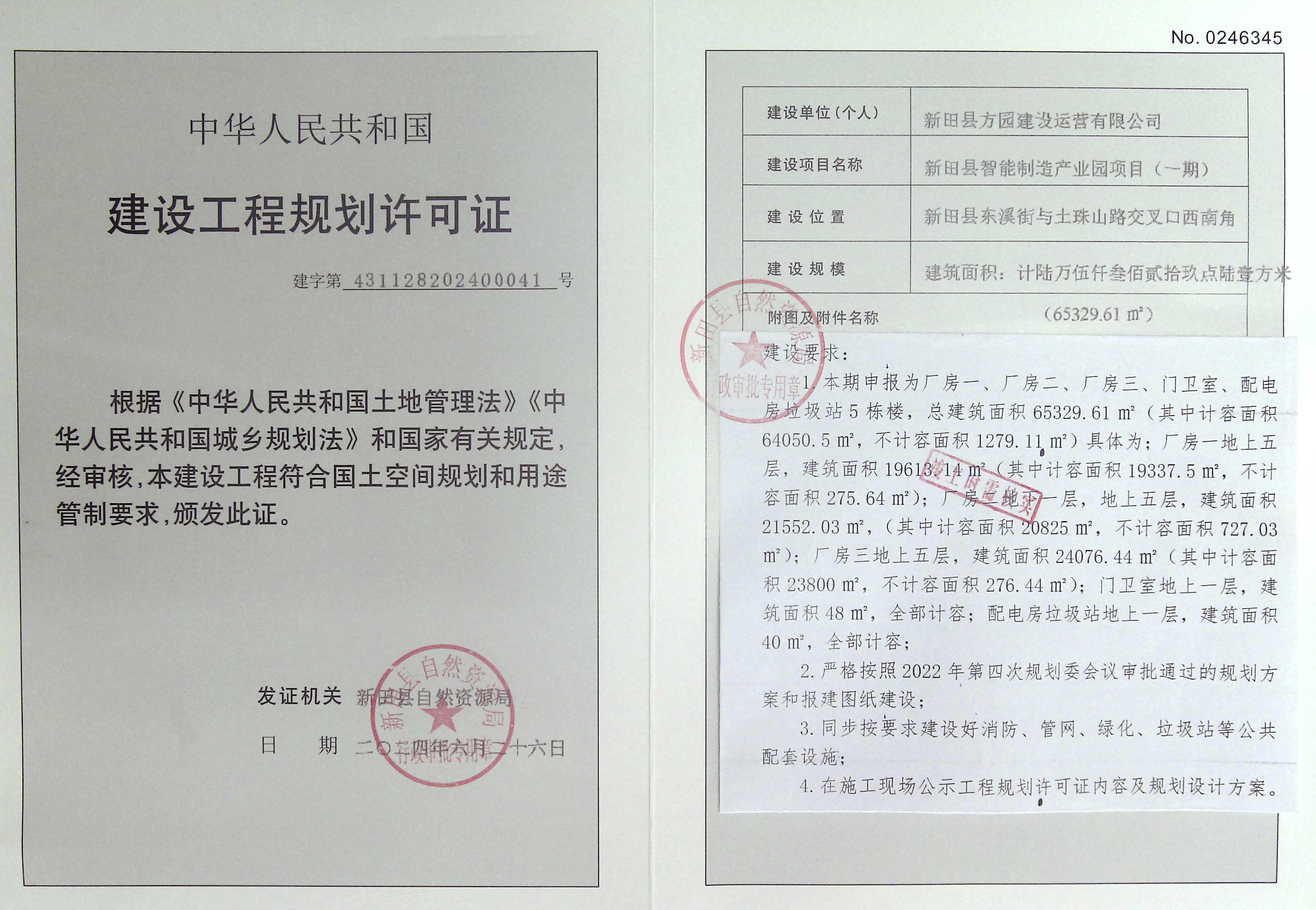新田县智能制造产业园项目建设工程规划许可证批后公布