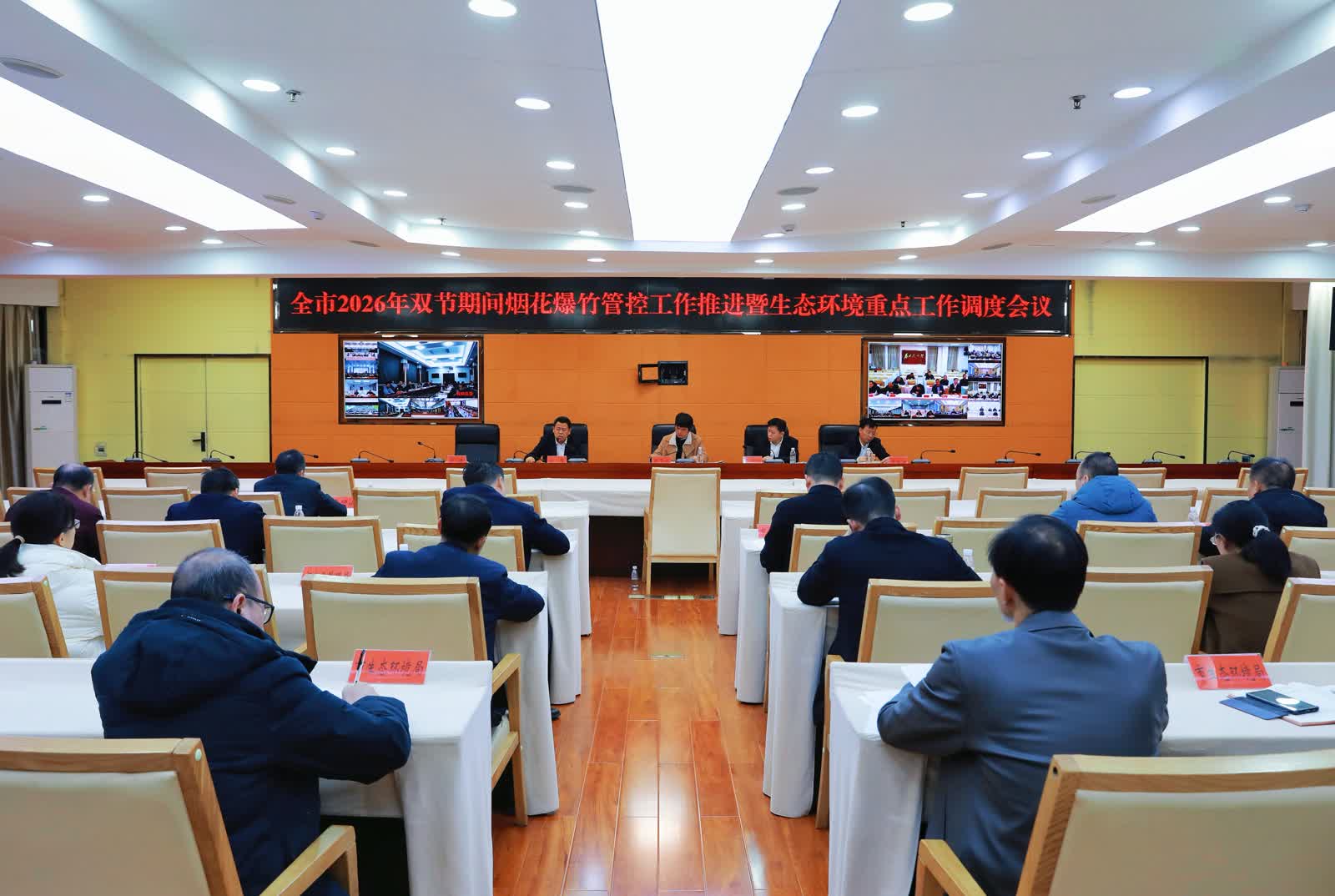12月5日下午,在全省2026年双节期间烟花爆竹管控工作推进会议结束后,我市立即召开全市2026年双节期间烟花爆竹管控工作推进暨生态环境重点工作调度会议,贯彻落实省会议精神,研究部署我市相关工作。市委常委、常务副市长刘厚,副市长龙飞凤出席会议并讲话。