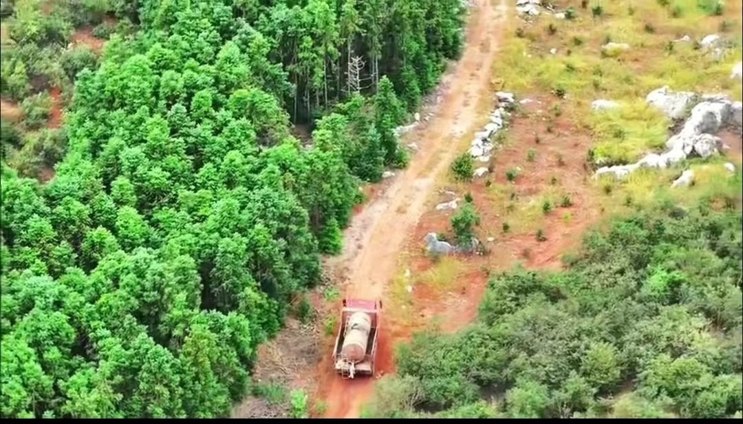 当日11时许,永州市生态环境局蓝山分局与蓝山县农业农村局在联合巡查过程中,发现一辆可疑罐车从新圩镇某养殖场驶出。执法人员迅速行动,一方面安排地面执法人员驾车跟踪,实时反馈车辆大概位置;另一方面调度环保无人机升空,从空中对罐车行驶轨迹、停靠区域进行全景监控,同步通过监管平台调取该车辆OBD系统数据,精准获取其近1小时内的行驶速度、停留时长、途经点位等关键信息。通过“地面跟踪+空中巡查+数据核验”三维联动,形成完整证据链,执法人员最终在新圩镇某树林内,当场抓获倾倒养殖粪污的涉事车辆。