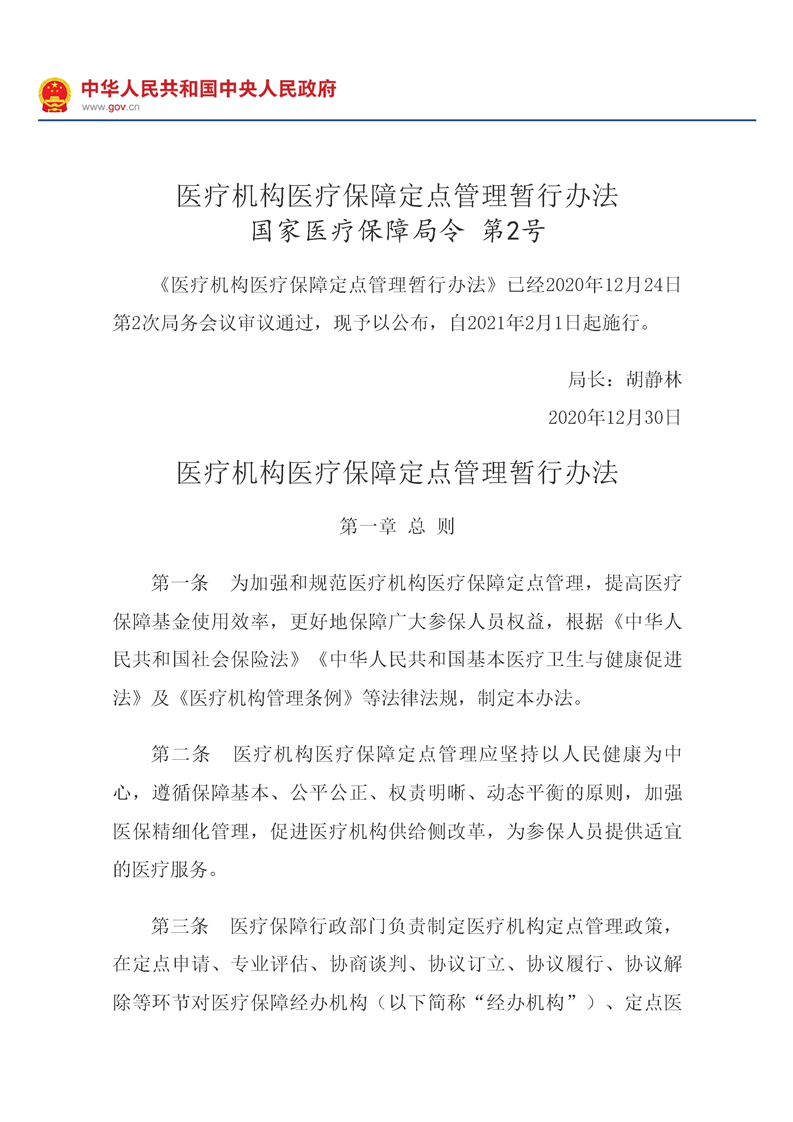 医疗机构医疗保障定点管理暂行办法