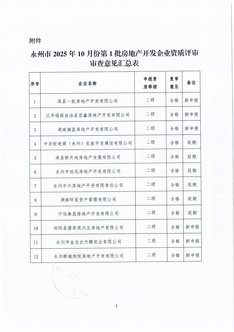 关于公布2025年10月第1批永州市房地产开发企业行政许可审批结果的通知