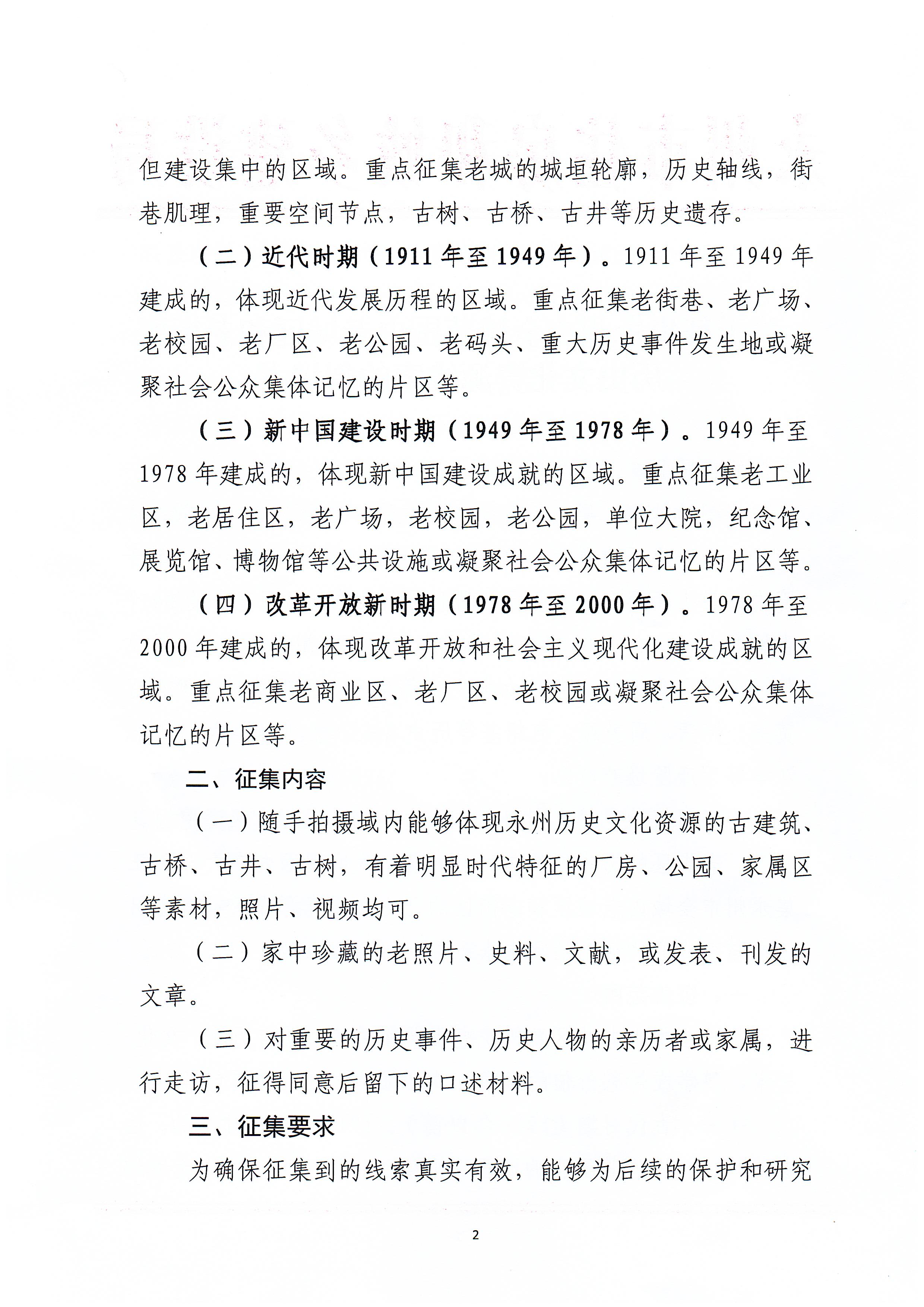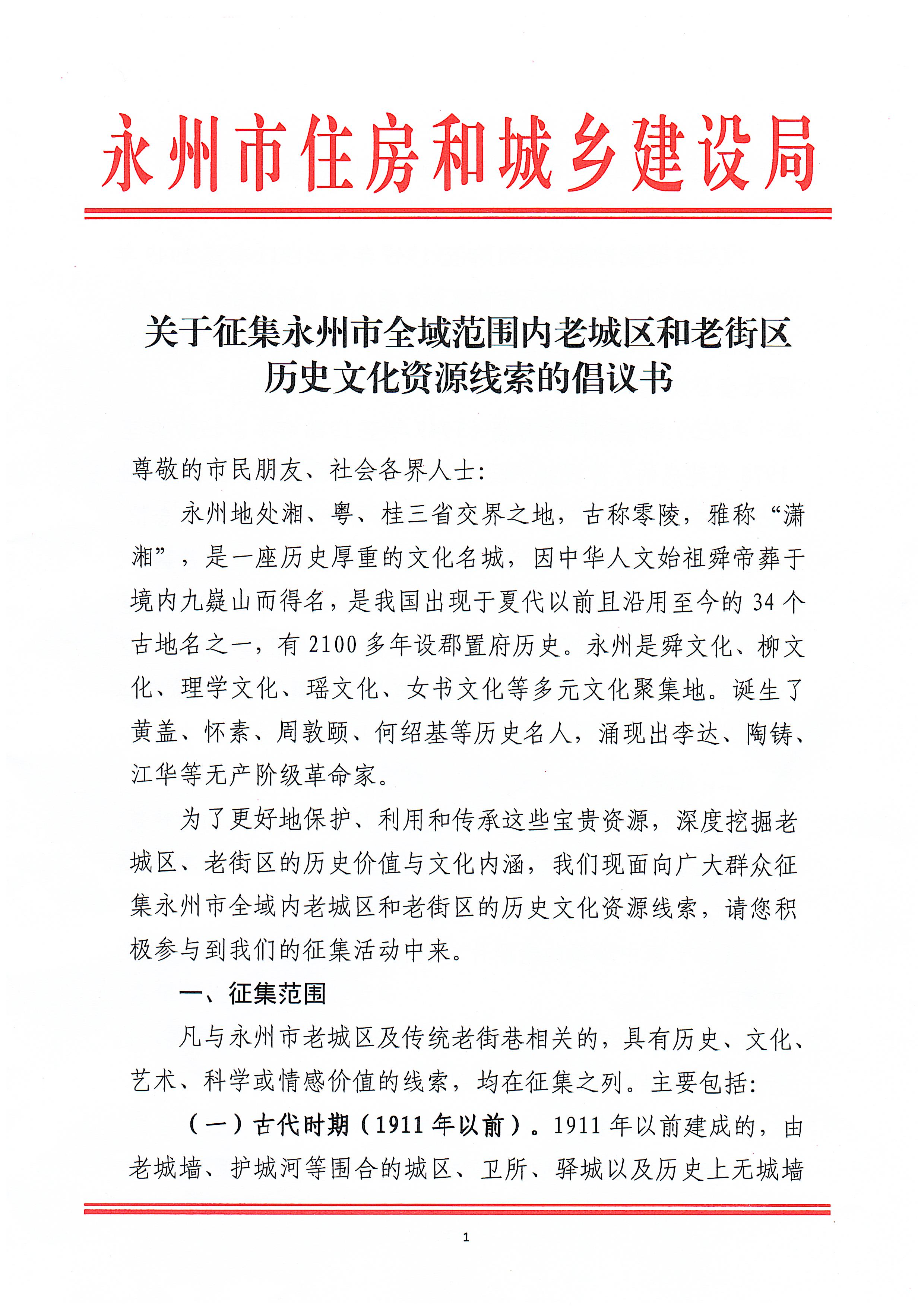 关于征集永州市全域范围内老城区和老街区历史文化资源线索的倡议书