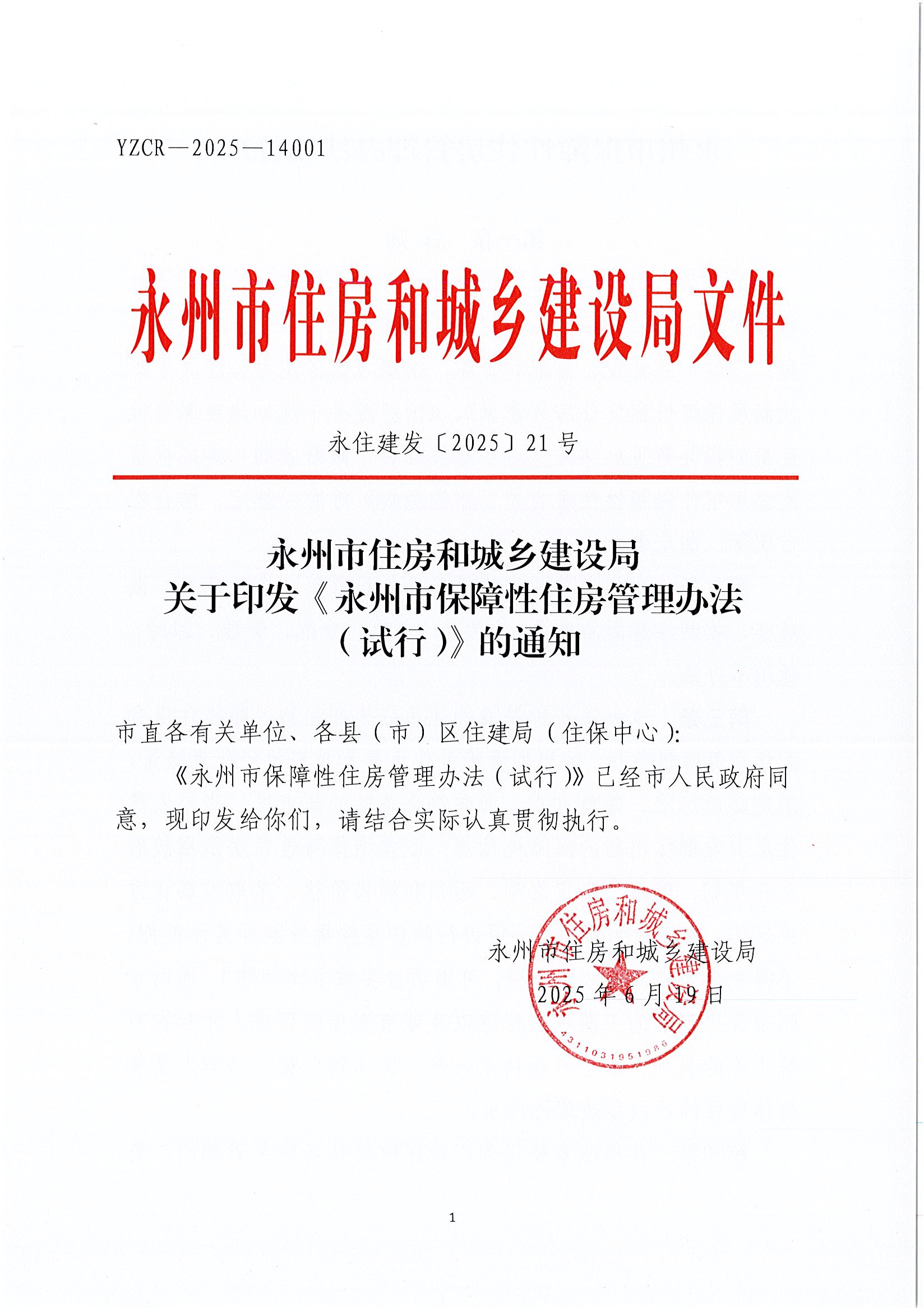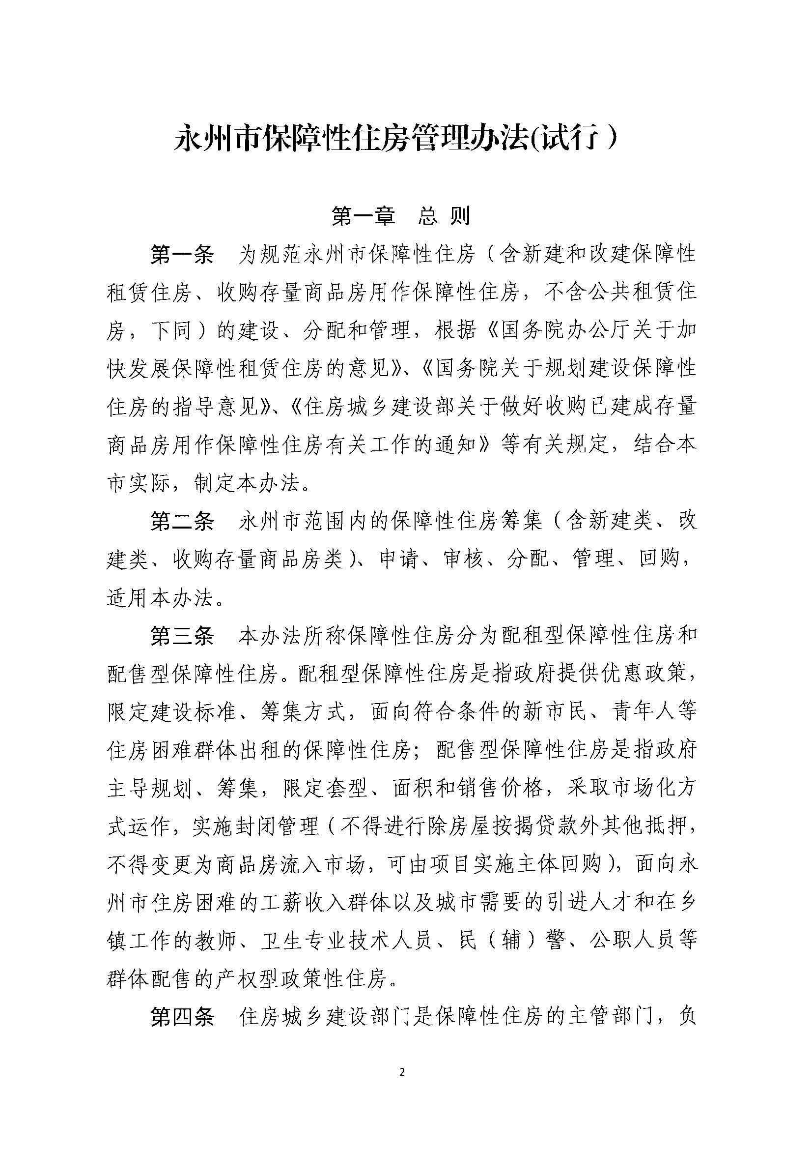 永州市住房和城乡建设局关于印发《永州市保障性住房管理办法(试行)》的通知