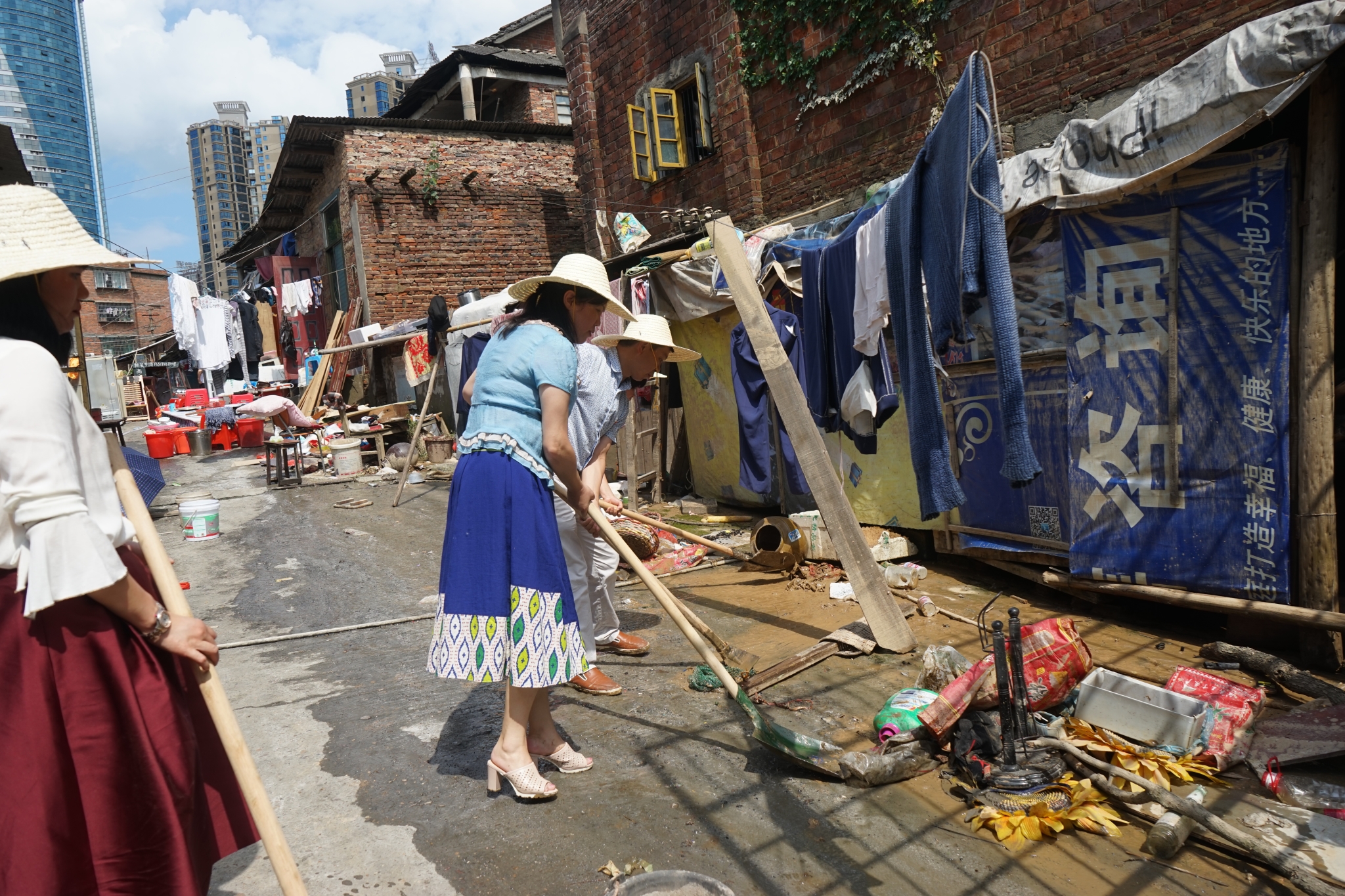 洪灾过后,市政协机关党员捐款赈灾并积极参加灾后环境整治